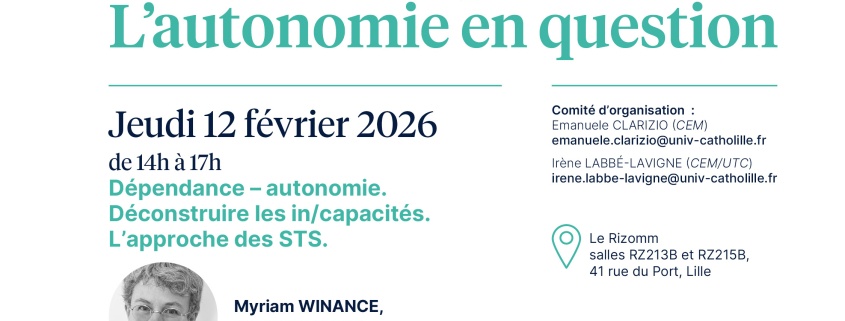 Séance 4 – jeudi 12 février 2026 de 14h à 17h : Myriam WINANCE, INSERM/CERMES3 : Dépendance – autonomie. Déconstruire les in/capacités. L’approche des STS –